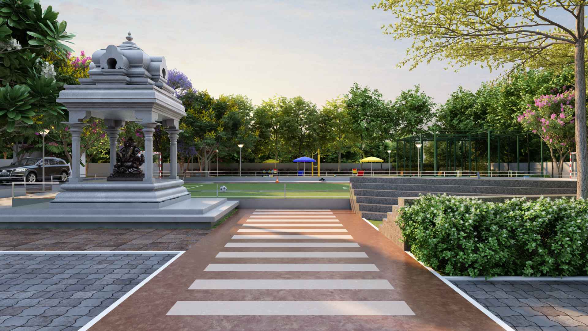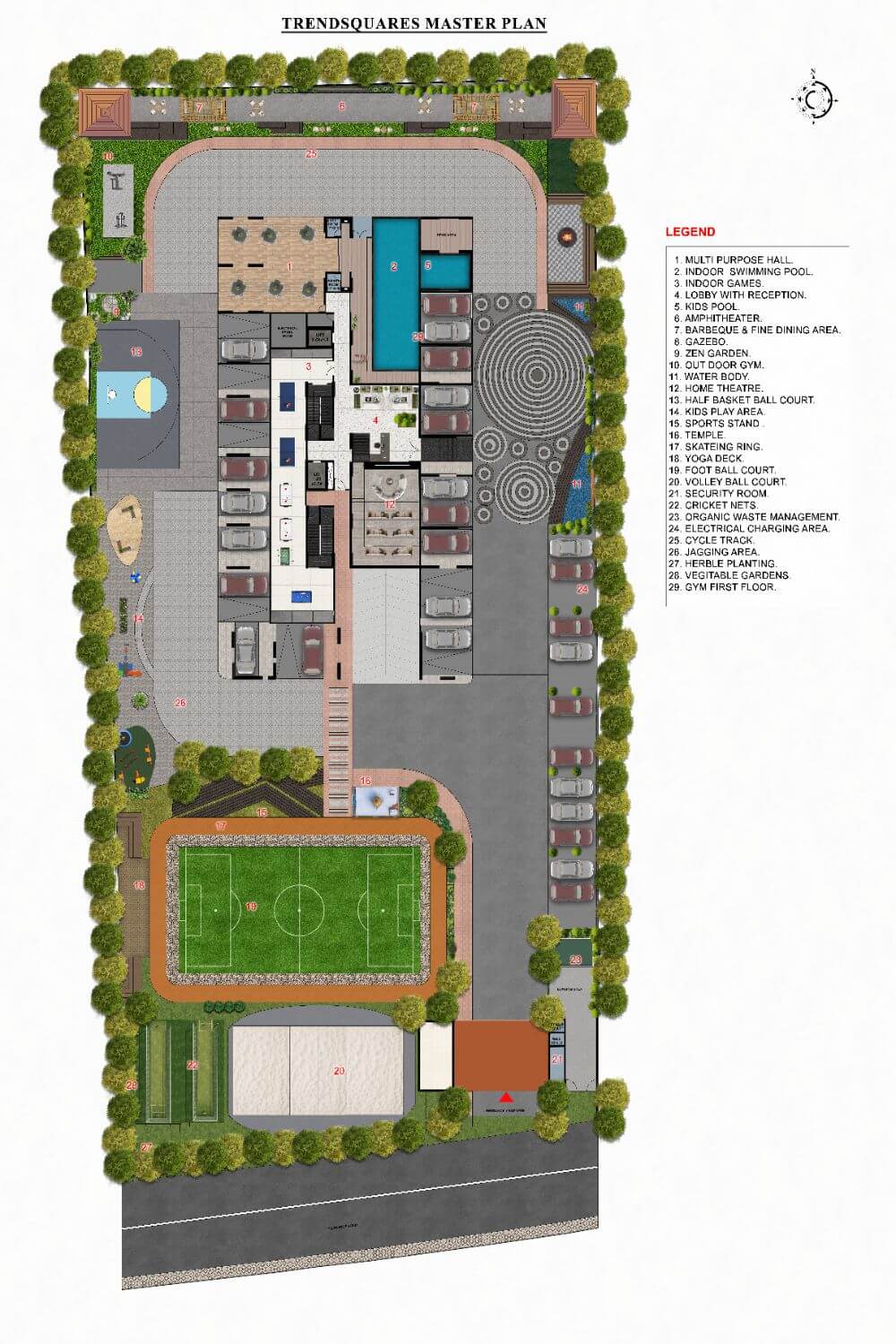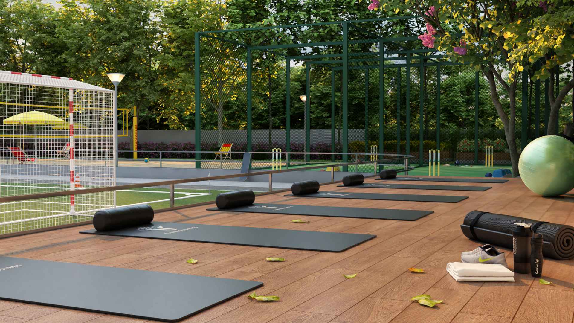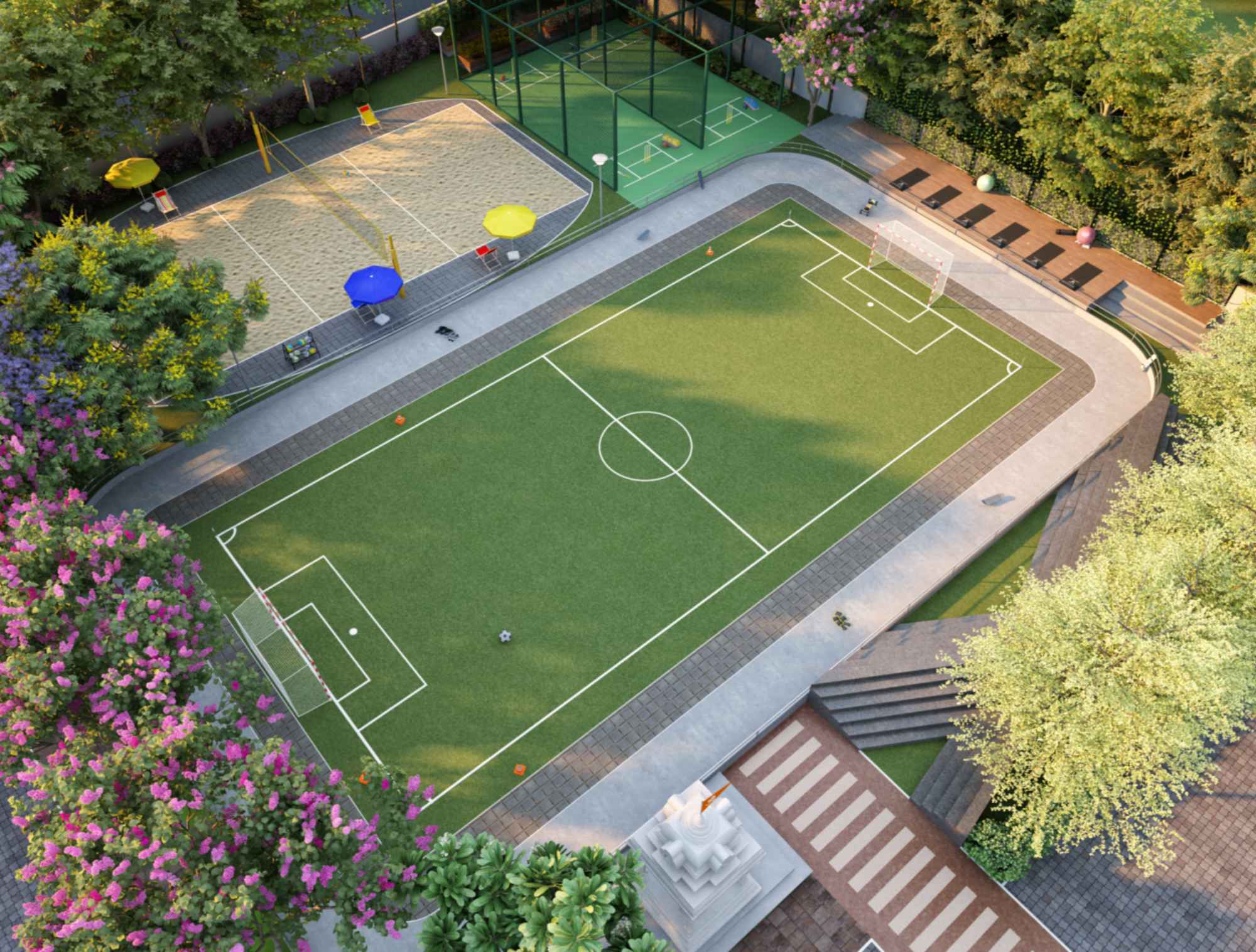 Half Basketball Court, Football Court, Volleyball Court, Skating Ring, Cricket Nets, Jogging Area, Cycle Track