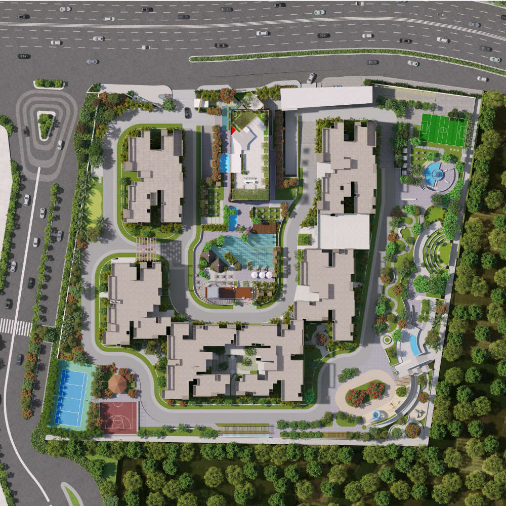 A thoughtfully planned gated community with six elegant towers. Homes are Vastu-compliant with spacious balconies, excellent cross ventilation, and maximum natural light. Landscaped walkways and green zones connect homes to the clubhouse and outdoor spaces.