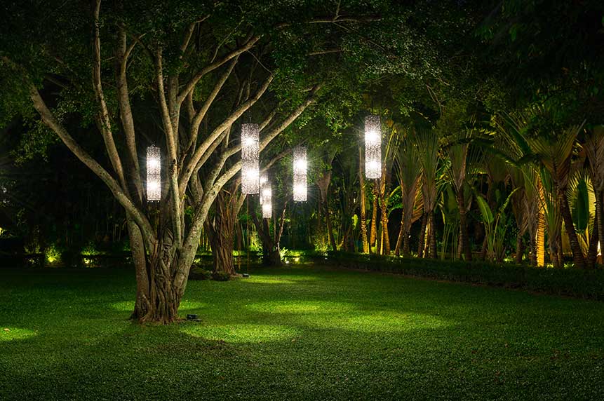 Lagoon-style swimming pool, indoor badminton and squash courts, mini soccer turf, skating rink, tennis court, jungle walking track, open-air theatre, gaming zone, coworking lounge, temple-tree garden, party lawn, and cabanas.